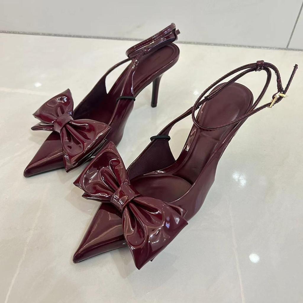 Туфли-шпильки красного цвета с ремешком на щиколотке для женщин из лакированной кожи с острым носком, босоножки на высоком каблуке, женские туфли-лодочки
