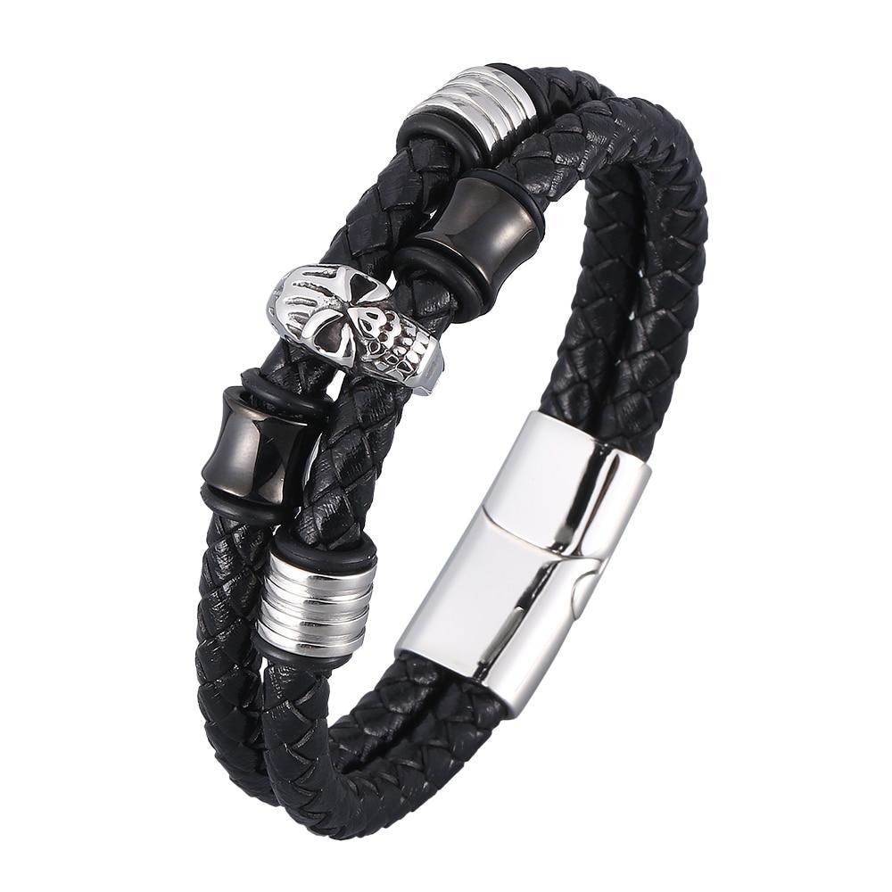 Панк мужской браслет с черепом, многослойный кожаный браслет с застежкой из нержавеющей стали, мужские ювелирные изделия, браслеты ручной работы — купить товар онлайн с бесплатной доставкой по всему миру!