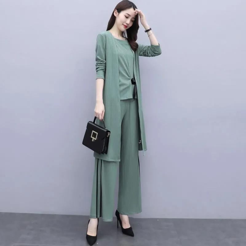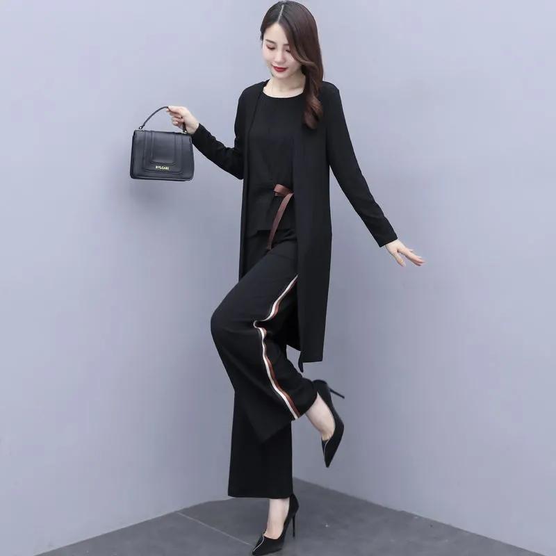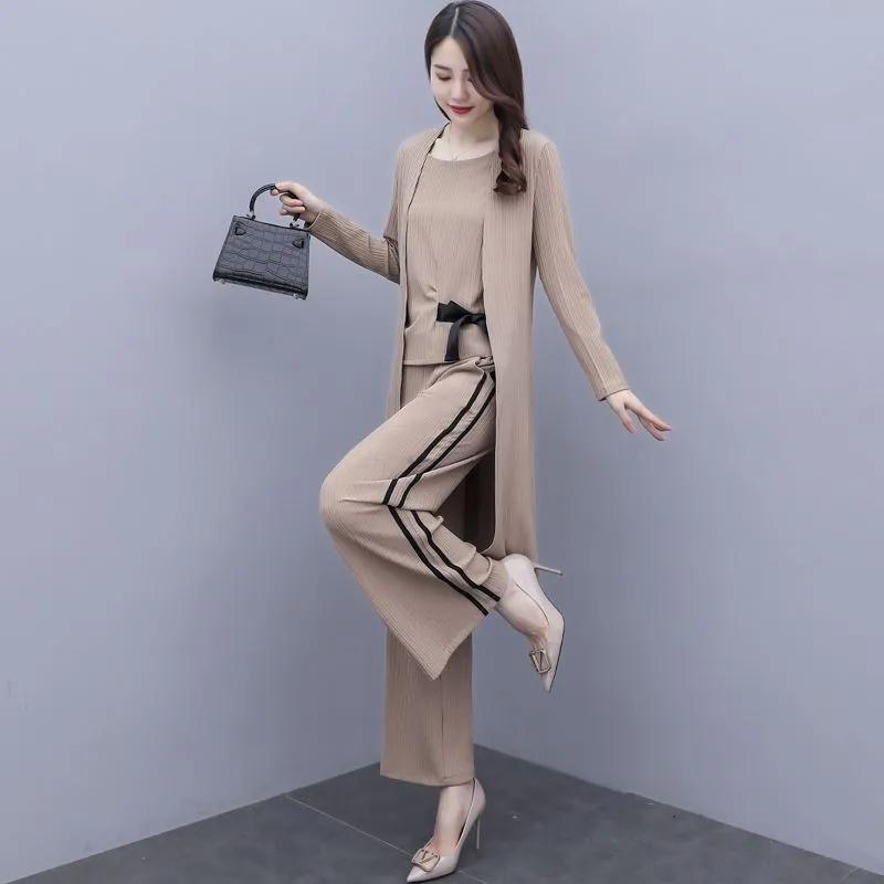 Женский костюм весна осень тонкий легкий костюм из трех предметов модный длинный кардиган брюки комплекты женский тонкий комплект из 3 предметов