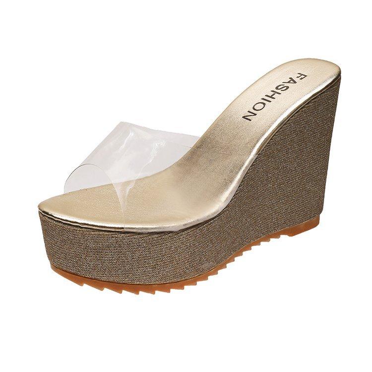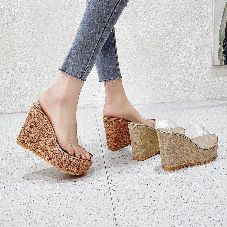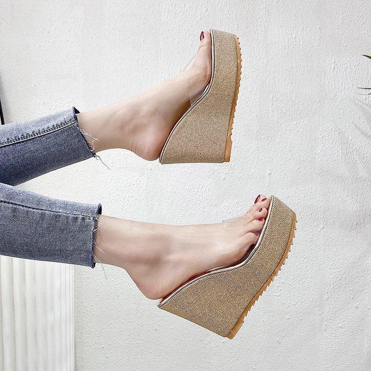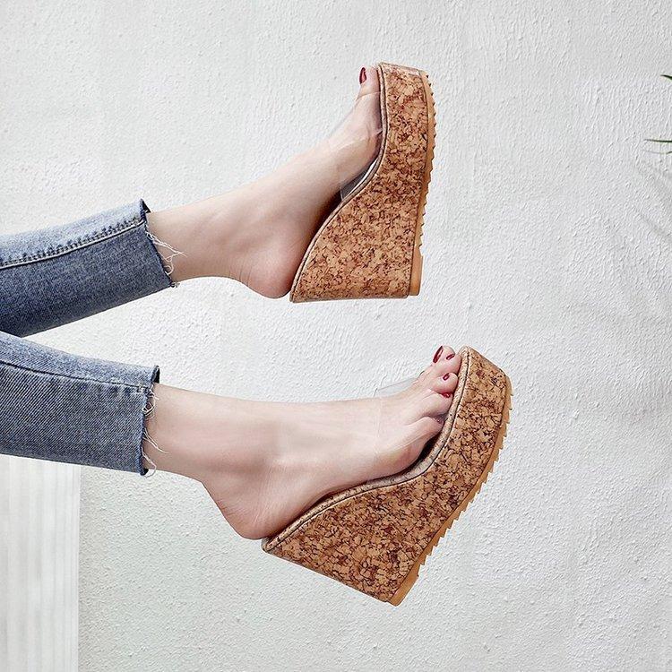 Женские туфли из бисквита 10 см, прозрачные босоножки с толстой подошвой и клиновидным каблуком, модные женские тапочки