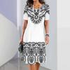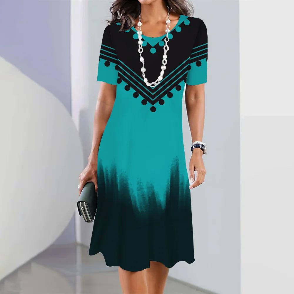 Женские платья 3D Color Blocking Printing Dress Элегантные топы с короткими рукавами Одежда Ретро-юбка А-силуэта Вечерняя красочная одежда