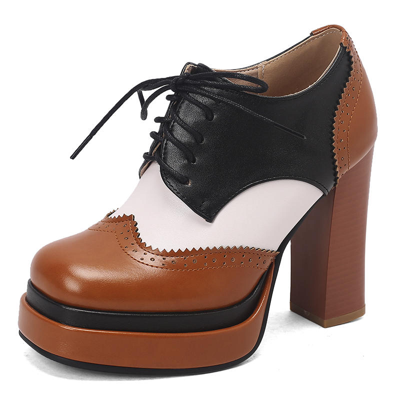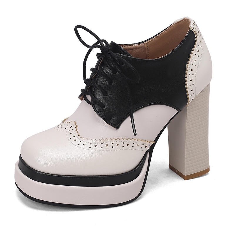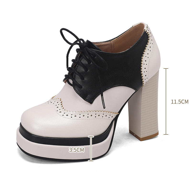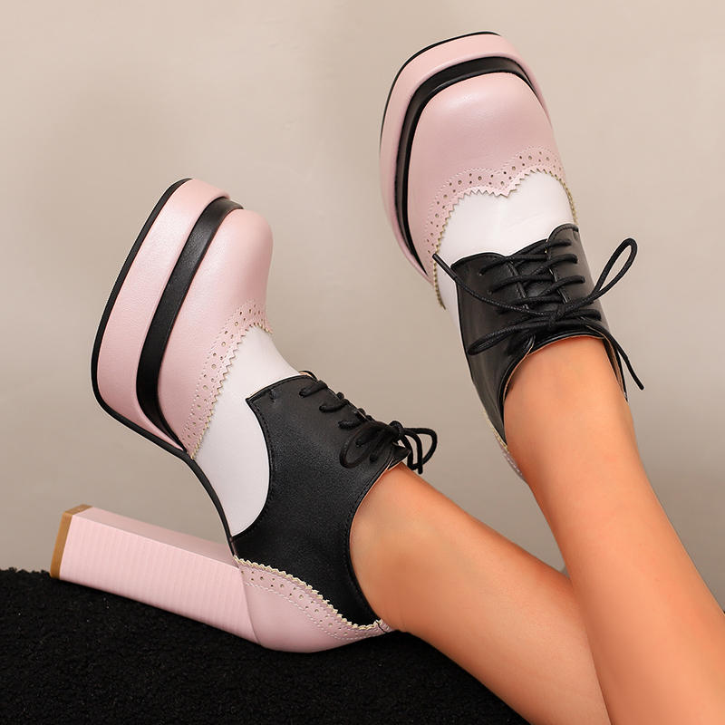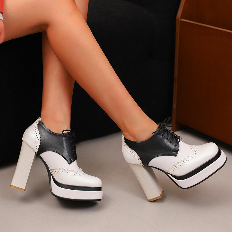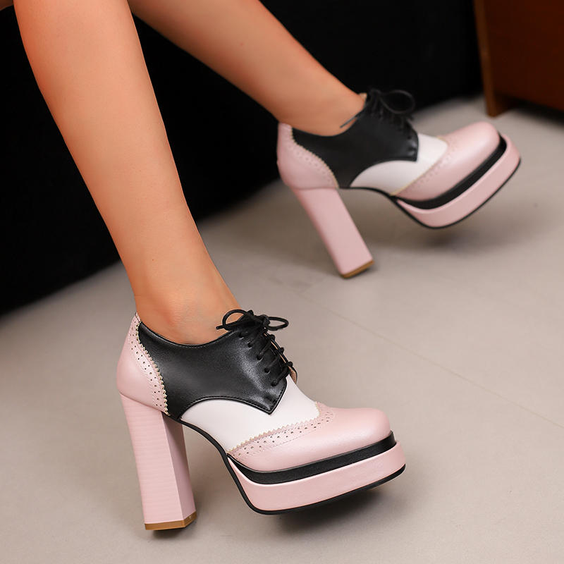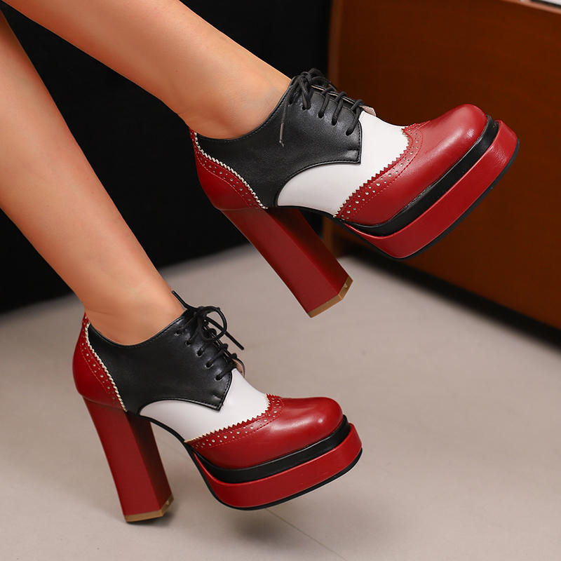 Женские туфли на высоком каблуке в европейском и американском стиле, водонепроницаемые, на толстом каблуке, подходящего цвета, на шнуровке, большого размера, на все сезоны