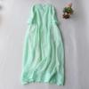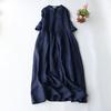 Платье из хлопка и льна, женское, с небольшим воротником-стойкой, элегантное, с плиссировкой, рукавом семь четвертей, свободное и элегантное, однотонное, длинное летнее платье