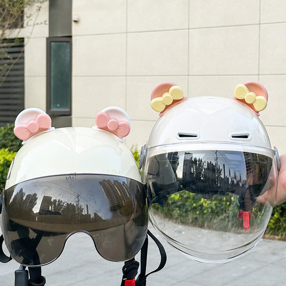 2 шт. милый мотоциклетный шлем с ушками медведя и бантом, шлем для мотокросса, электрический велосипедный шлем и аксессуары для украшения рулевого колеса автомобиля, стиль вождения