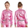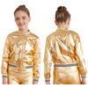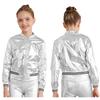 Детская блестящая бейсбольная куртка с длинными рукавами для девочек, блестящая куртка-бомбер на металлической молнии, пальто, верхняя одежда