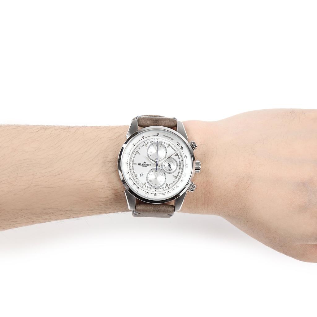 Часы Grandeur Plus Итальянский кожаный ремешок серии GRP001W5 Серый [Grandeur Plus] Мужские