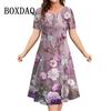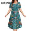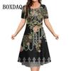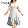 Новые 2025 винтажные платья женские 3D цветы принт с коротким рукавом летние повседневные пуловеры модные свободные женские платья больших размеров