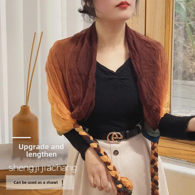 Шелковый плиссированный солнцезащитный платок и шаль для всех сезонов