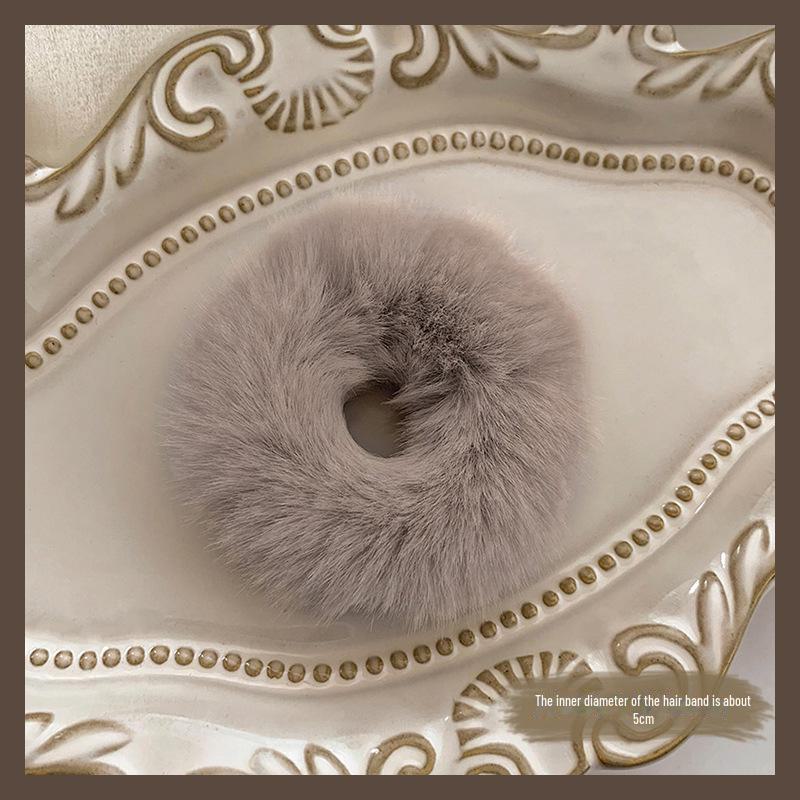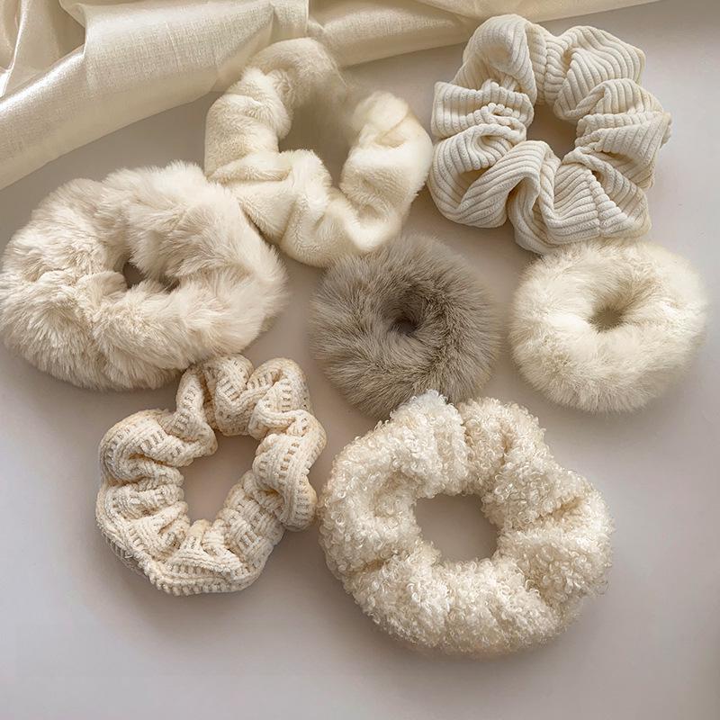 Белое плюшевое кольцо для волос, эластичная повязка на голову с шариком - осенне-зимние аксессуары для женщин