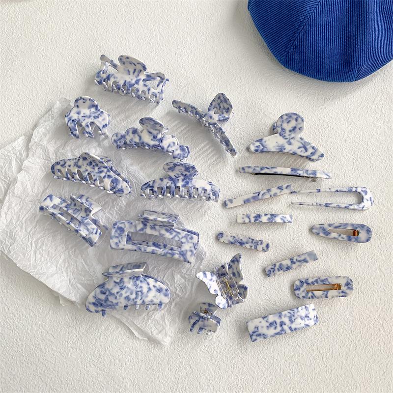 Элегантная китайская фарфоровая шпилька сине-белого цвета, заколка для волос на затылке для женщин, головной убор в виде заколки-акулы, идеально подходит для влиятельных лиц.