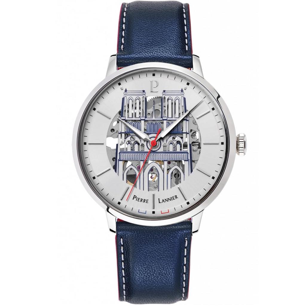 Автоматические часы бренда Skeleton Notre Dame с кожаным ремешком Tricolor Cool Button Analog Waterproof Imported [Pierre Lanier] Мужские [Обычный продукт]