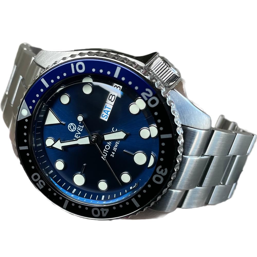 Handmade Japanese Watch 10 ATM Water Resistant Blue Sapphire Crystal NH36 Automatic Movement Watch LEVEL7 x Black Bezel Non-Reflective Diver's Men's