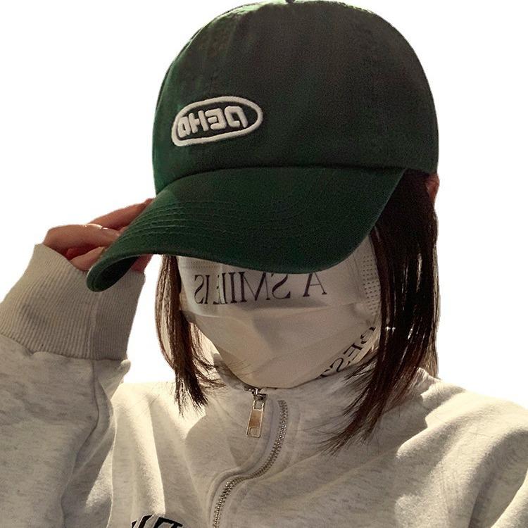 Новый стиль кепка-утконос из стираного хлопка - унисекс бейсболка с вышитыми корейскими буквами
