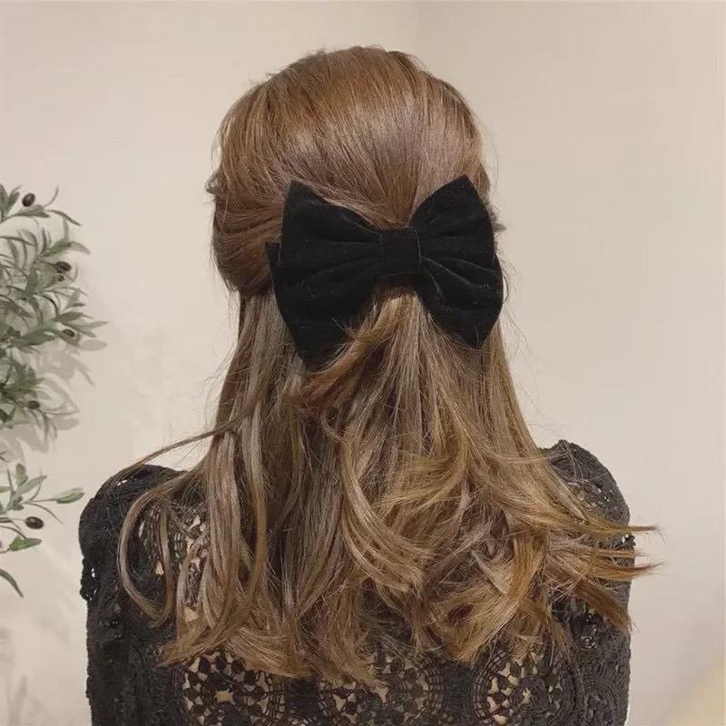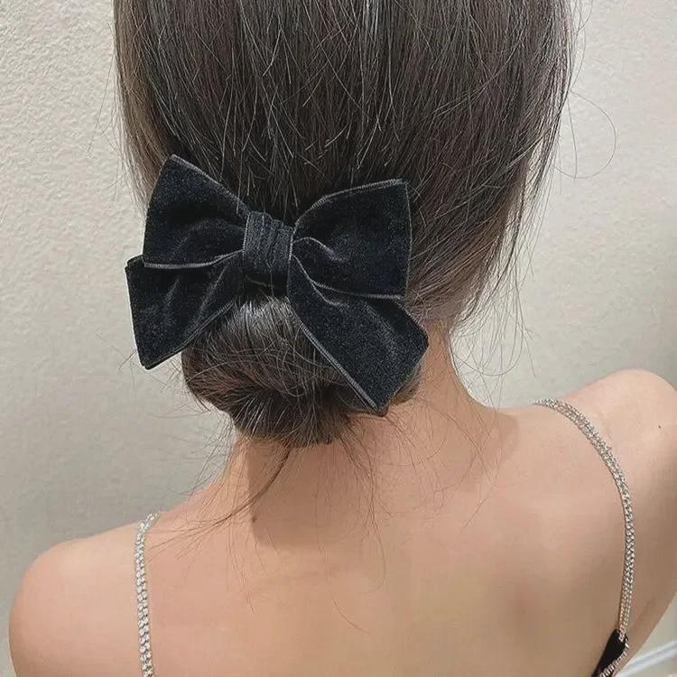 Корейская бархатная двухслойная заколка для волос с большим бантом – стильный, модный аксессуар для волос