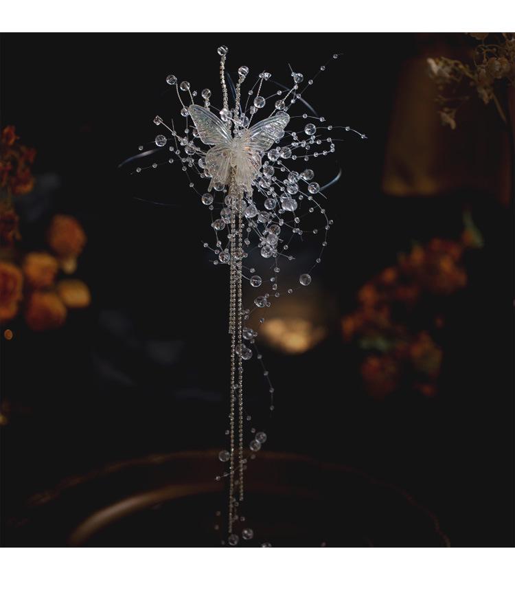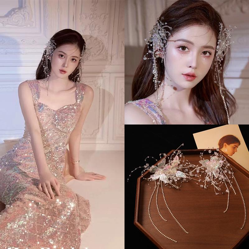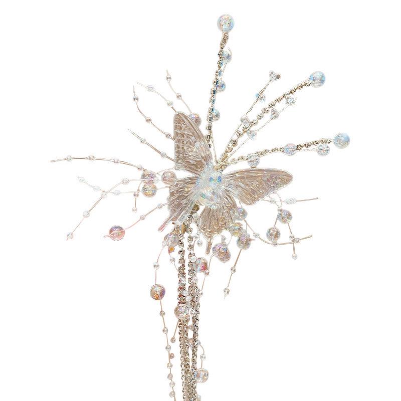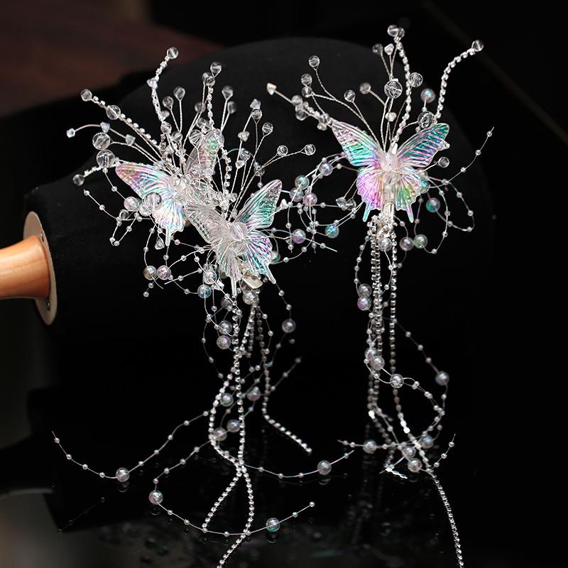 2024 г. Свадебная шпилька с кисточками и жемчугом в виде бабочки - свадебный аксессуар в виде принцессы и феи из кристаллов