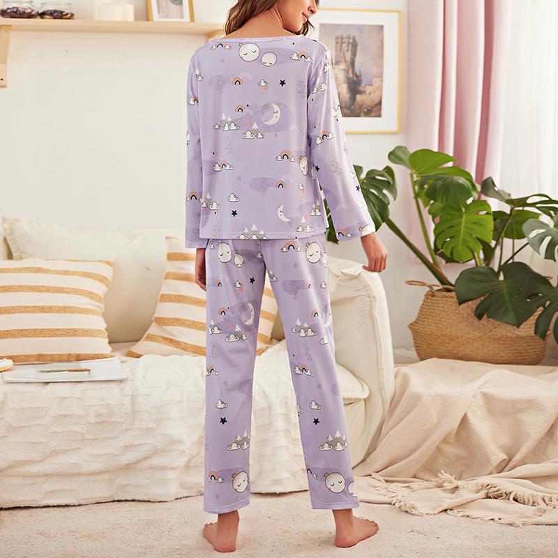 Женская пижама с принтом в виде сердца, осенний комплект с длинными рукавами, эластичный пояс, брюки, свободная мягкая удобная повседневная домашняя одежда