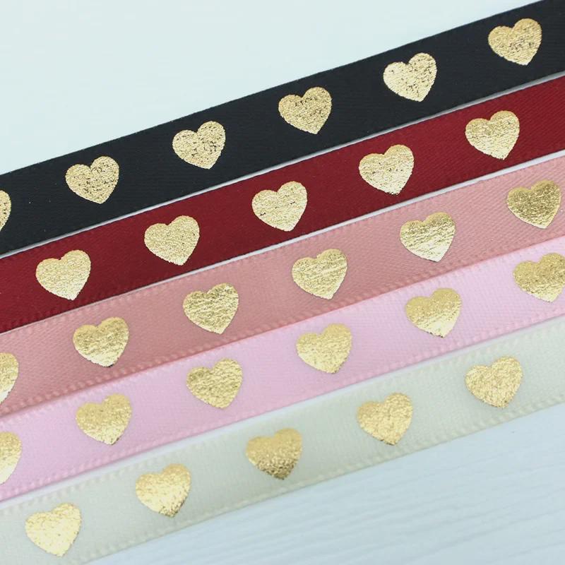 Лента для горячего тиснения с принтом «Любовь» с золотым персиковым сердцем, 1 см, 10 м/рулон — идеально подходит для упаковки подарков
