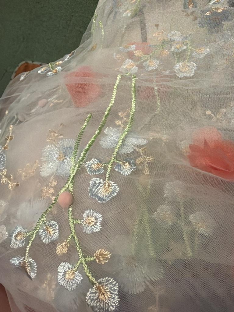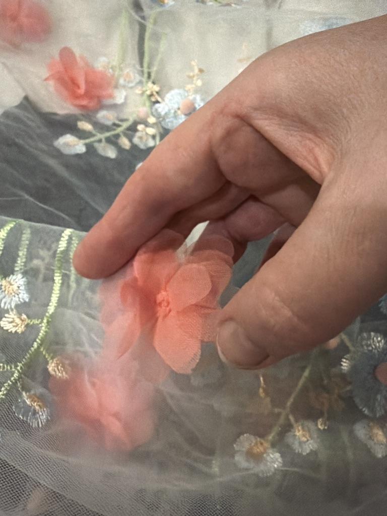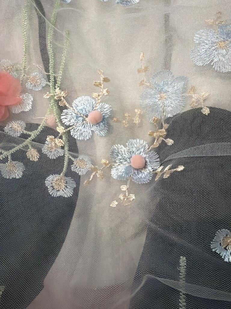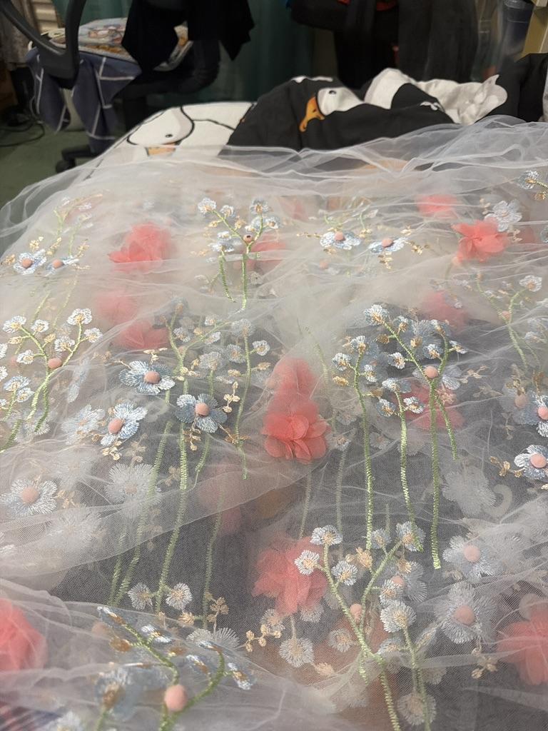 «Новая 3D вышитая кружевная ткань с бисерными лепестками для женских юбок»
