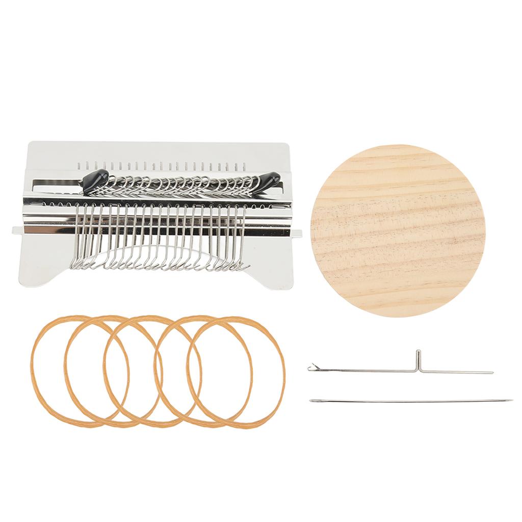 1 x крючок для вязания5 x резинка1 x руководство пользователяСодержимое набора: Наш небольшой набор ткацких станков имеет 1 вязальную машину, 1 деревянный диск, 1 прямую иглу, 1 крючок для вязания крючком и 5 резинок, которых достаточно для вашего ежедневного использования.