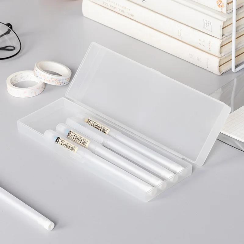 Пеналы для школьного офиса, простая матовая прозрачная пластиковая коробка, матовые белые ручки, хранение канцелярских принадлежностей