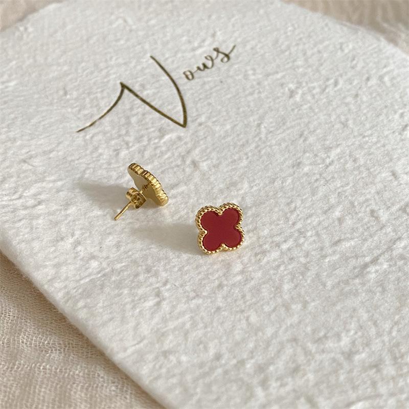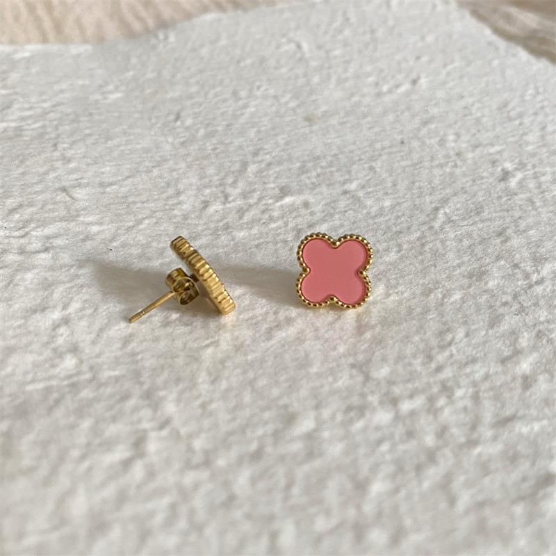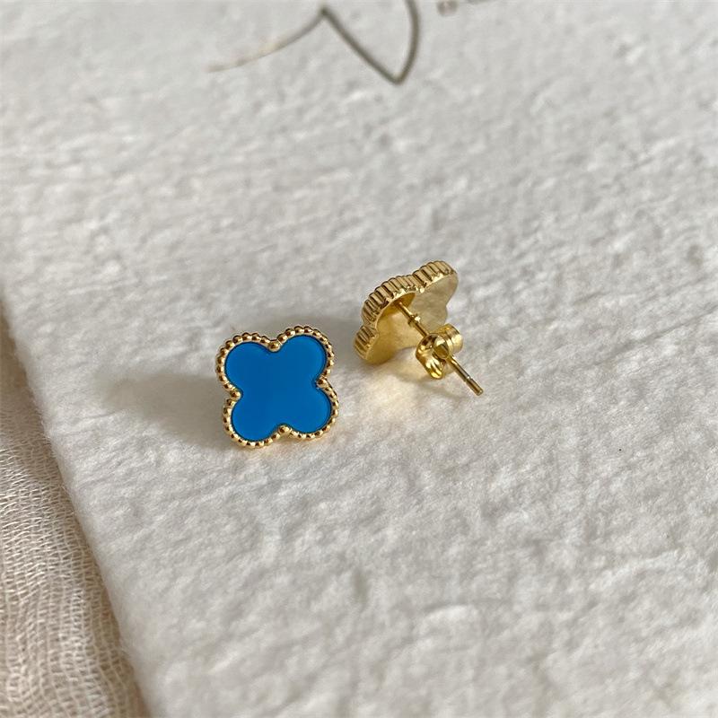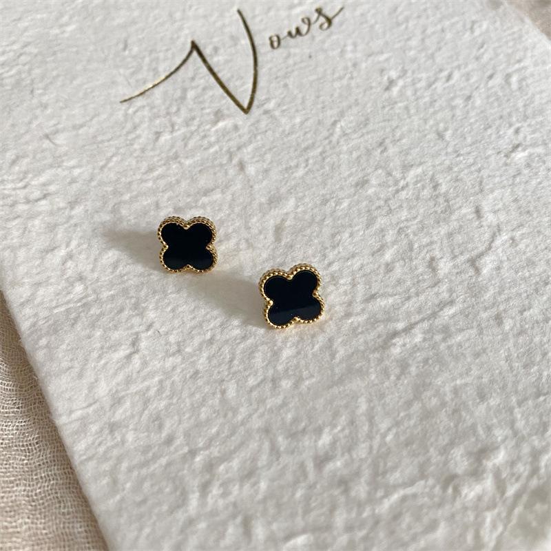 Серьги из титановой стали с четырьмя листочками клевера, антиаллергенные серьги, перламутровые счастливые травы, универсальные, простые, высококлассные серьги Sense Of