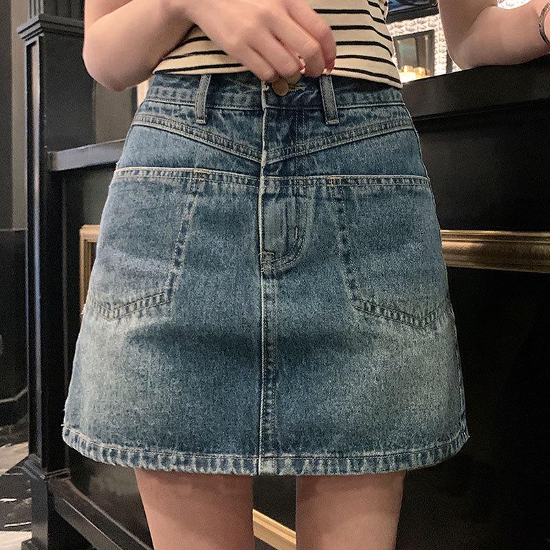 Классическая универсальная молодежная короткая юбка в стиле ретро с разрезными карманами, повседневная юбка с высокой талией, А-силуэт, супер женская летняя модная джинсовая короткая юбка — купить товар онлайн с бесплатной доставкой до всему миру!