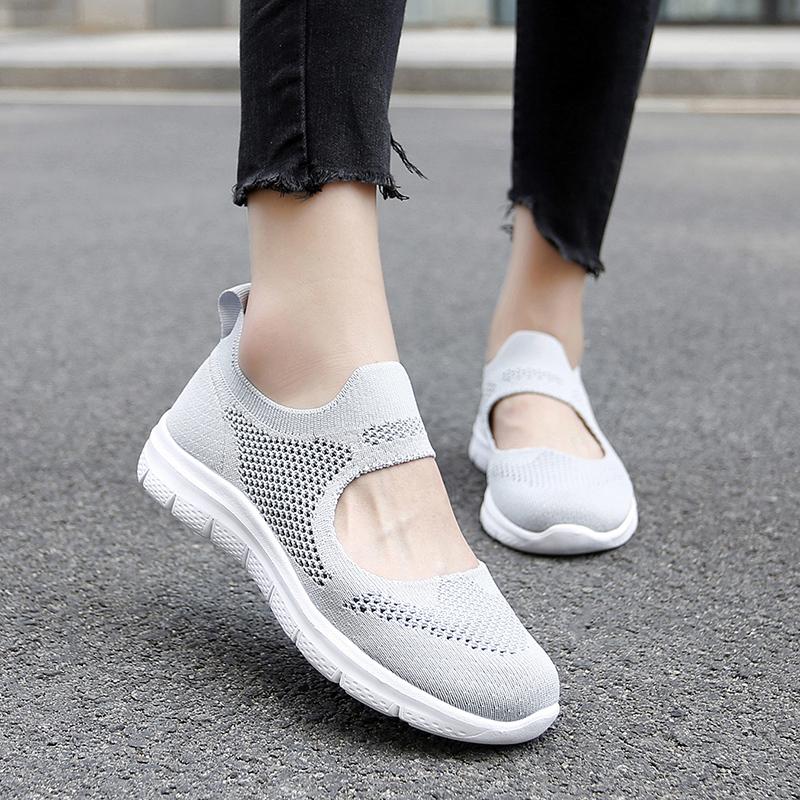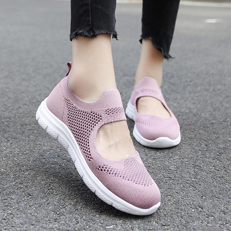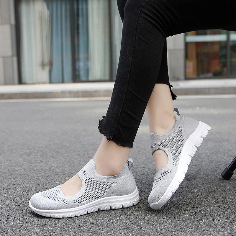 Женские сандалии Мэри Джейн Кроссовки Повседневные розовые носки Туфли Серые Легкие Пляжные Туфли Большие Размеры