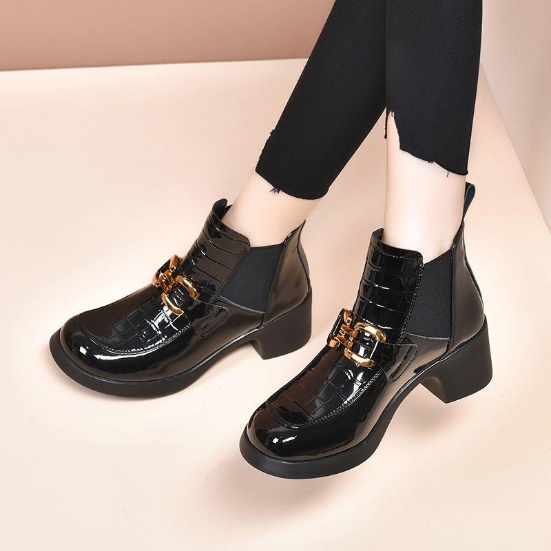 Ботильоны Chelsea на высоком каблуке Botas с круглым носком из лакированной кожи