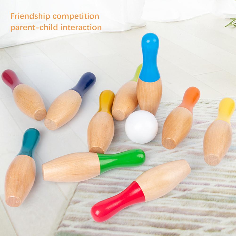 Игры в боулинг на лужайке, набор деревянных кегельбанов для двора, 10 кеглей, 3 мяча и сетчатая сумка для