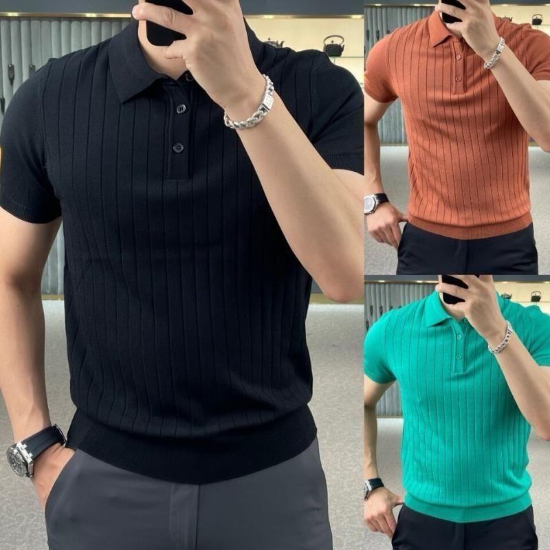 Летняя уличная мода мужская одежда рубашки поло корейская повседневная мужская одежда однотонные короткие рукава тонкие лацканы тонкие деловые топы