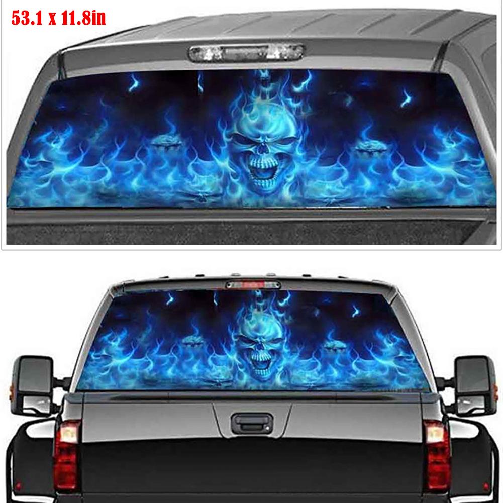 135x36 см автомобиль грузовик внедорожник пылающий скелет заднее стекло тонировка графическая наклейка наклейка