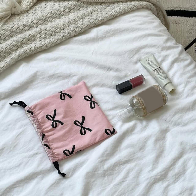 Милая сумка с бантом и завязками на шнурке, косметичка для хранения, женский и девичий портативный кошелек, мини-сумка-органайзер на шнурке