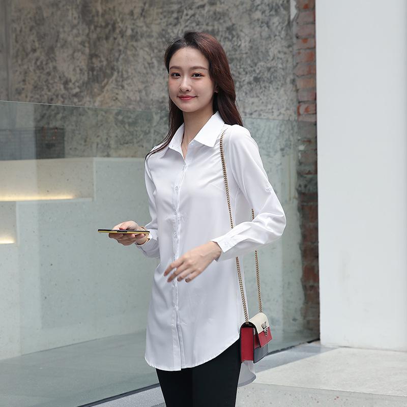 Женская рубашка средней длины, корейская мода, женские топы, сексуальная рубашка BF, блузка с длинным рукавом, женская осенняя женская одежда, белая рубашка для женщин