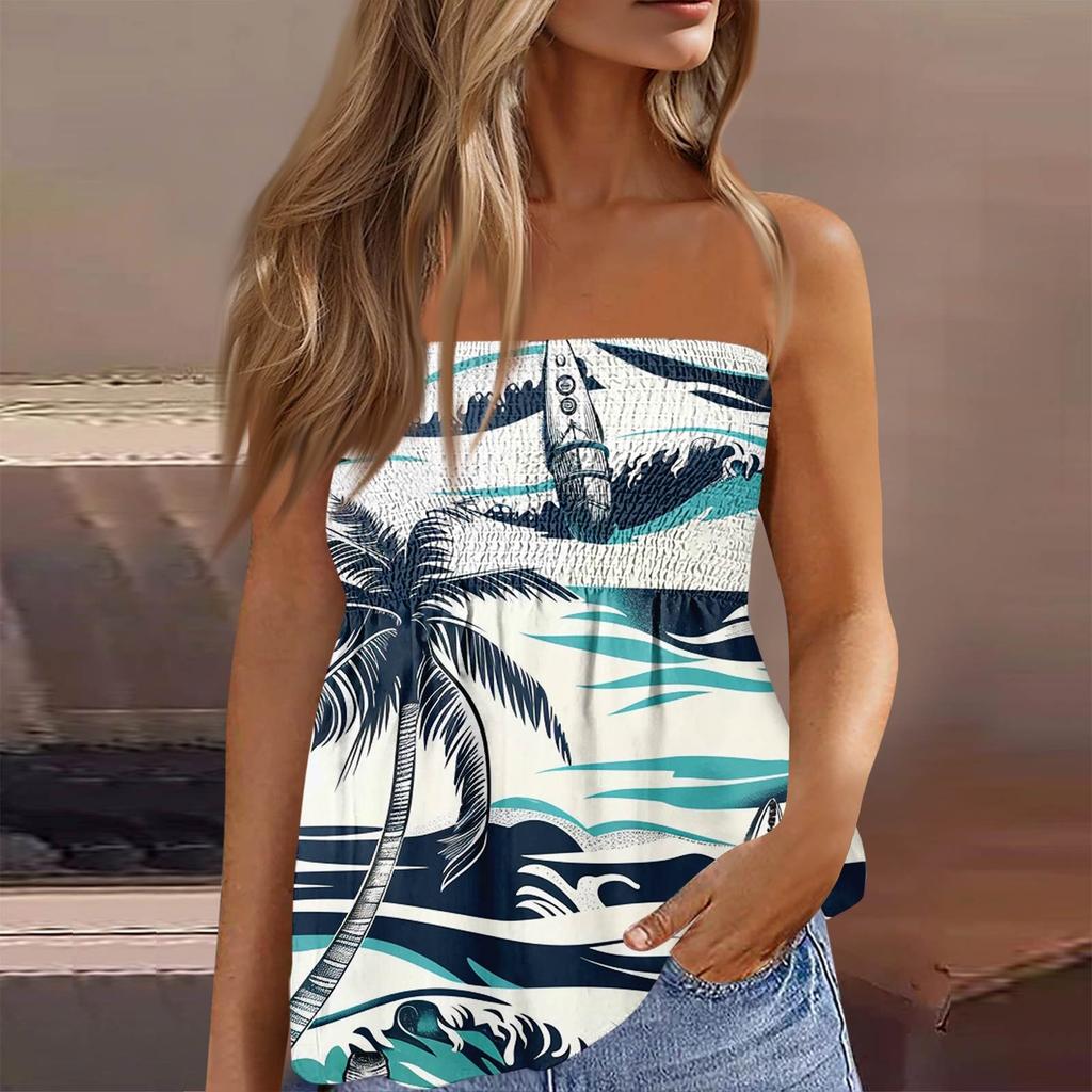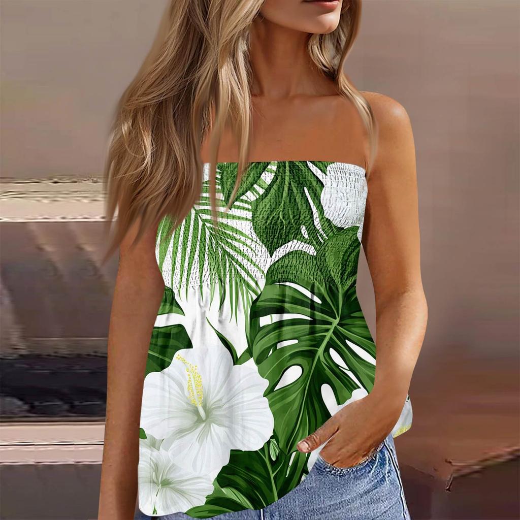 Летние топы-трубы для женщин, милая сексуальная футболка без рукавов с открытыми плечами и цветочным принтом