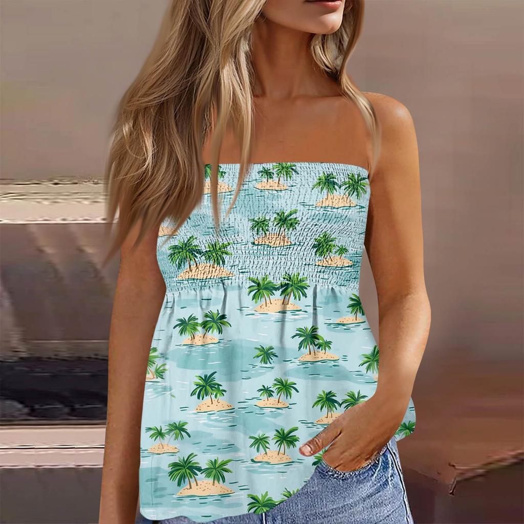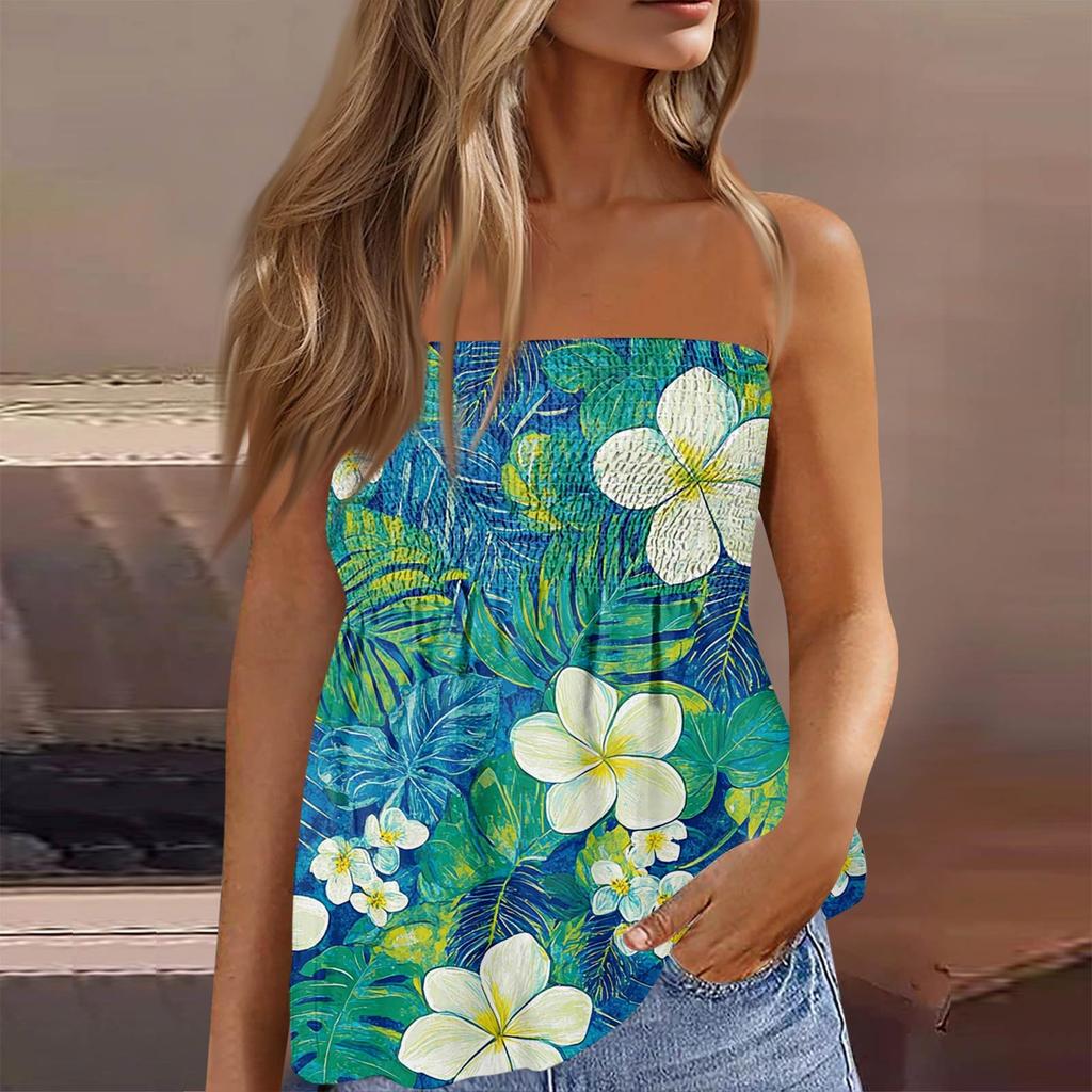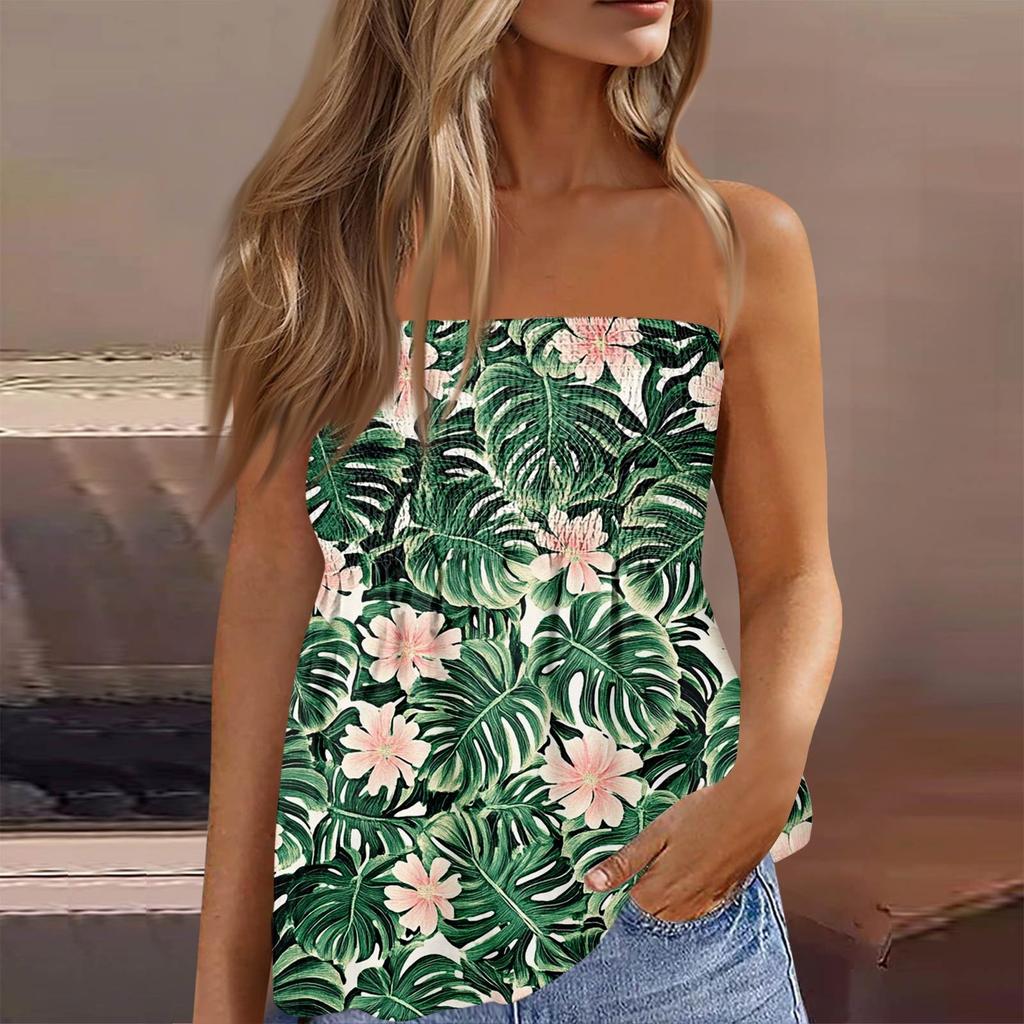 Летние топы-трубы для женщин, милая сексуальная футболка без рукавов с открытыми плечами и цветочным принтом