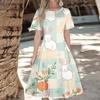 Женское повседневное модное платье с пасхальным принтом, круглое платье с коротким рукавом и талией, средней длины (с молнией)