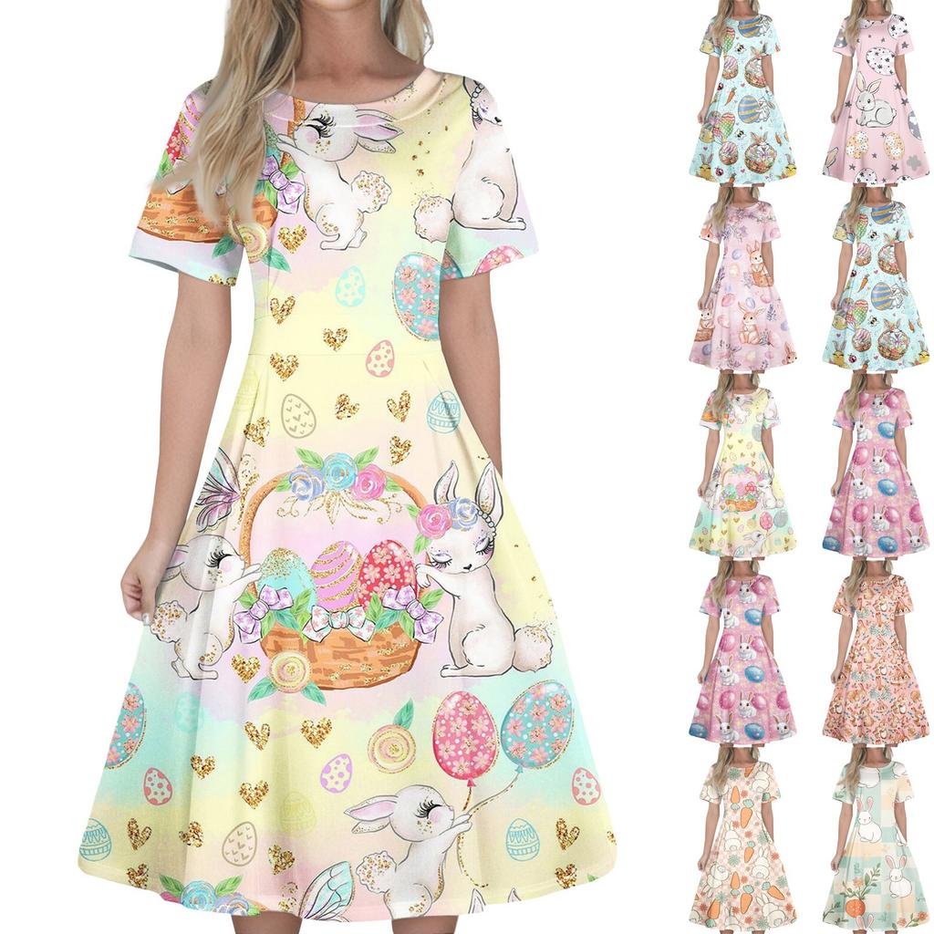 Женское повседневное модное платье с пасхальным принтом, круглое платье с коротким рукавом и талией, средней длины (с молнией) — купить товар онлайн с бесплатной доставкой до всему миру!