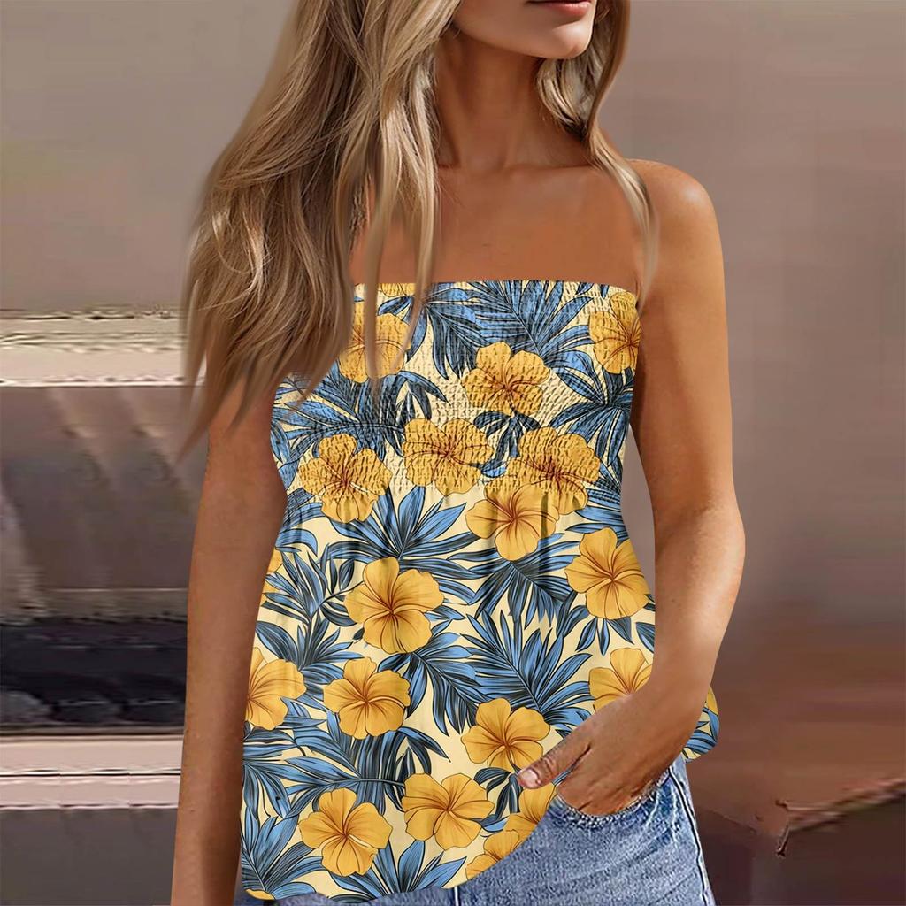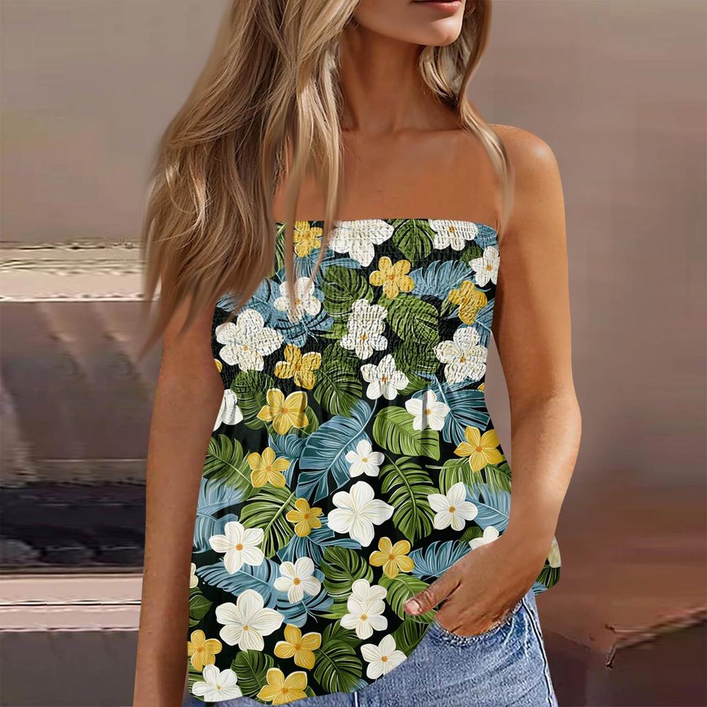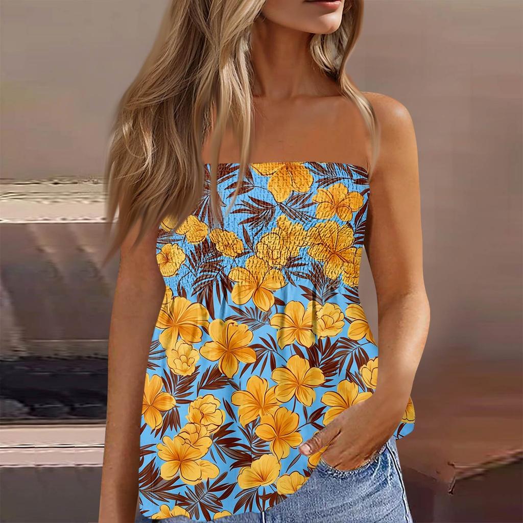Летние топы-трубы для женщин, милая сексуальная футболка без рукавов с открытыми плечами и цветочным принтом