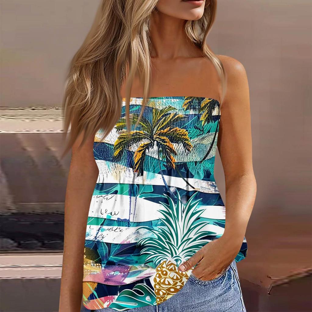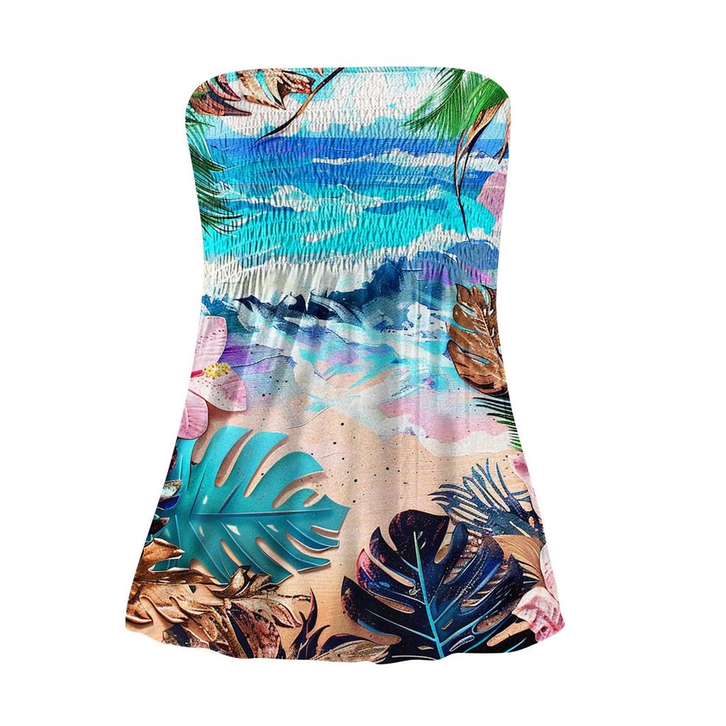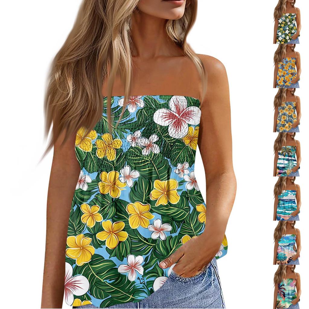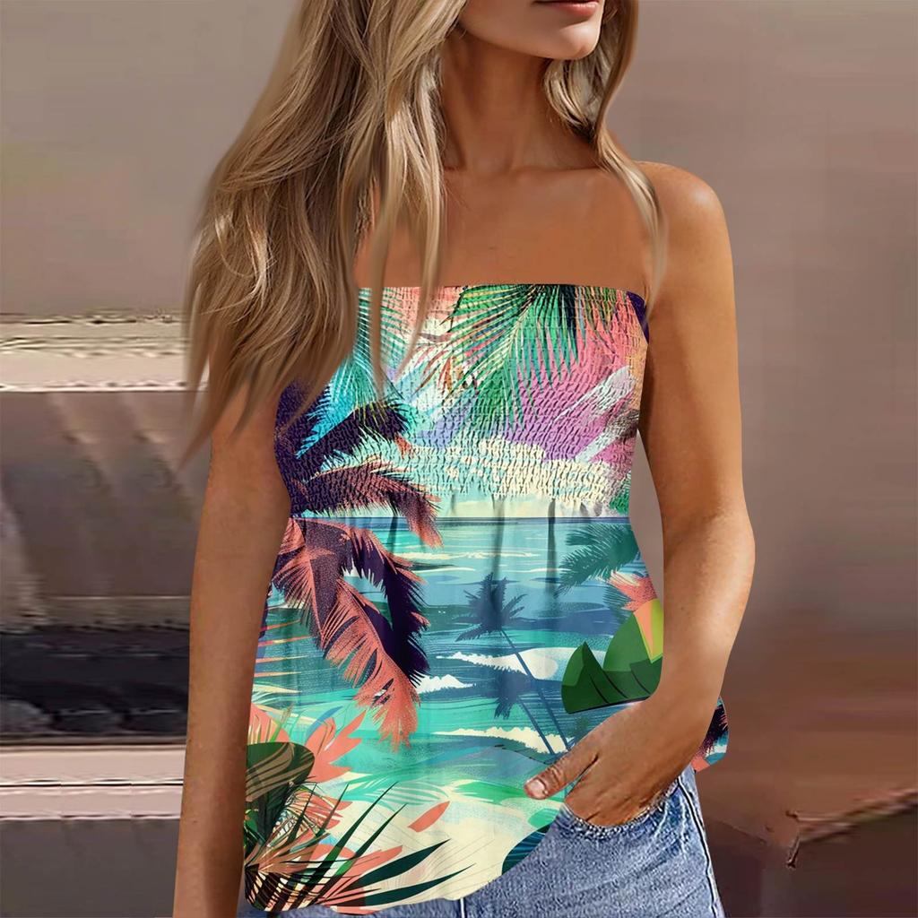 Летние топы-трубы для женщин, милая сексуальная футболка без рукавов с открытыми плечами и цветочным принтом