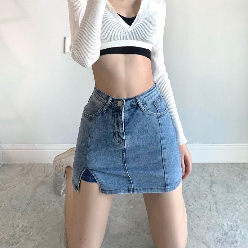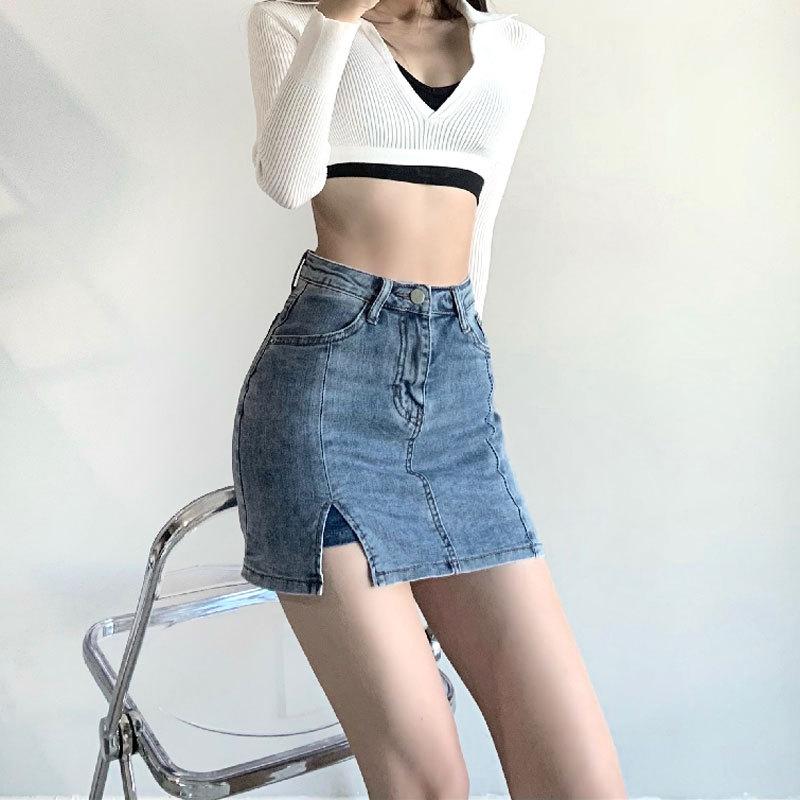 Юбка для стройности и молодости, эластичная, узкая, с высокой талией, А-силуэта, облегающая, в стиле ретро, юбка до бедра, женская летняя модная джинсовая короткая юбка