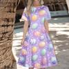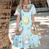 Женское повседневное модное платье с пасхальным принтом, круглое платье с коротким рукавом и талией, средней длины (с молнией)