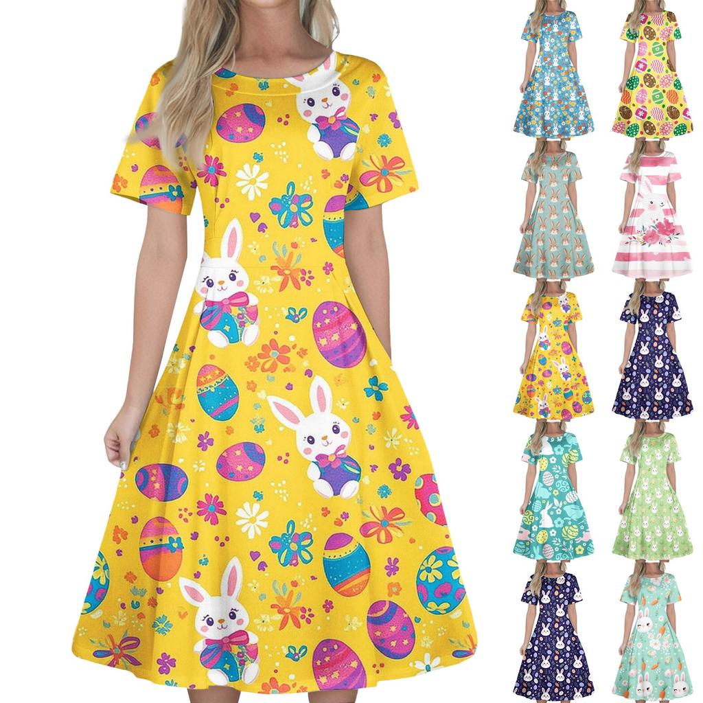Женское повседневное модное платье с пасхальным принтом, круглое платье с коротким рукавом и талией, средней длины (с молнией) — купить товар онлайн с бесплатной доставкой до всему миру!