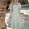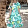 Женское повседневное модное платье с пасхальным принтом, круглое платье с коротким рукавом и талией, средней длины (с молнией)
