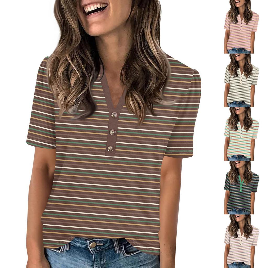 Женский модный повседневный свитер с коротким рукавом и принтом на пуговицах и V-образным вырезом — купить товар онлайн с бесплатной доставкой до всему миру!