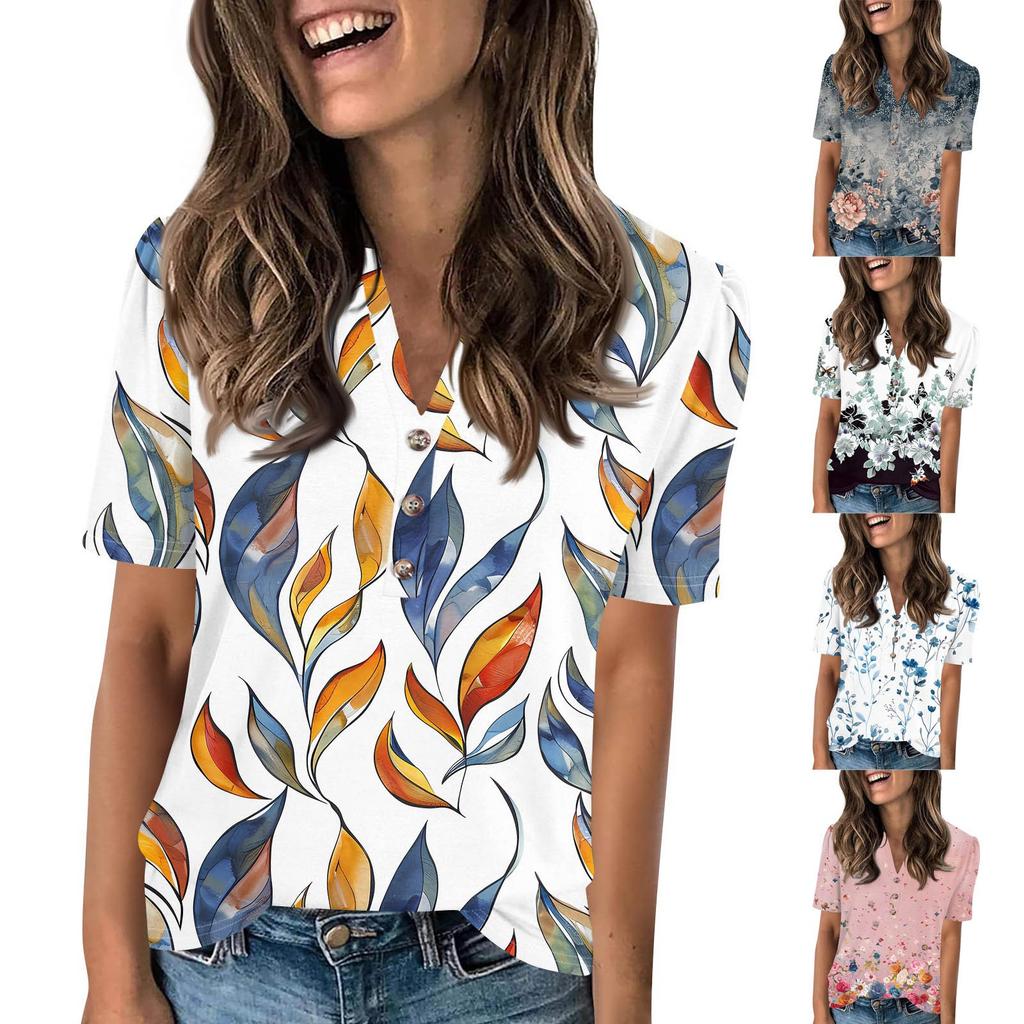 Женский модный повседневный свитер с коротким рукавом и принтом на пуговицах и V-образным вырезом — купить товар онлайн с бесплатной доставкой по всему миру!