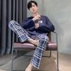 Весенняя хлопковая пижама для мужчин, домашняя одежда для сна, синяя клетчатая пижама, мужская пижама, домашняя одежда, пижама Hombre