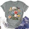 Женская повседневная футболка с круглым вырезом и цветочным принтом, короткий рукав