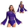 Женская лоскутная расклешенная рукава с открытой спиной, блестящая танцевальная одежда со стразами для гимнастики, джаза, латиноамериканского фигурного катания, балета