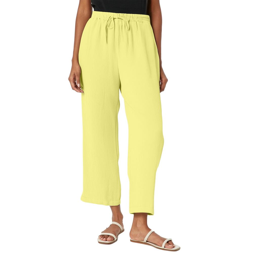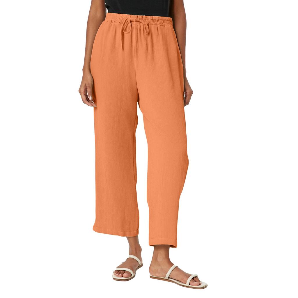 Женские однотонные брюки из хлопка и льна с карманами и эластичным поясом, повседневные брюки, женские брюки