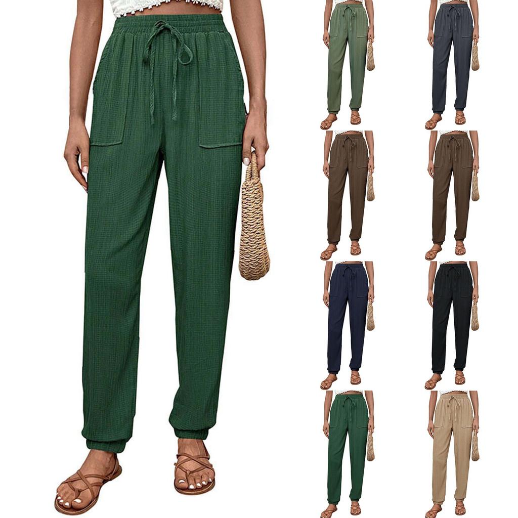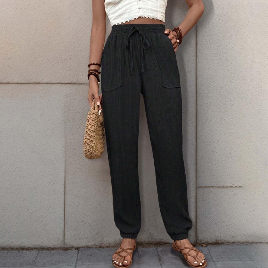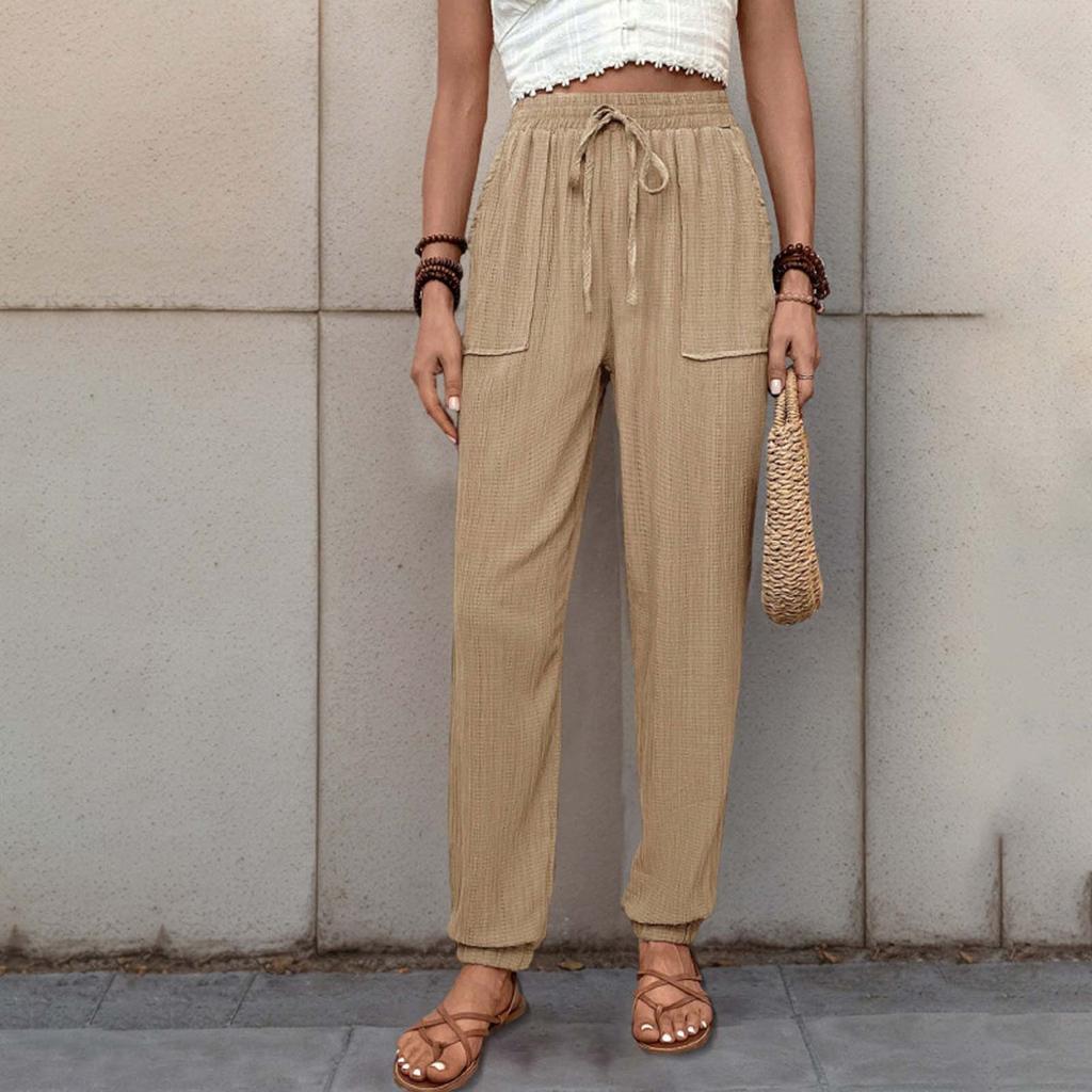 Женские повседневные брюки однотонные с эластичным поясом и завязками на шнурке, брюки с карманами